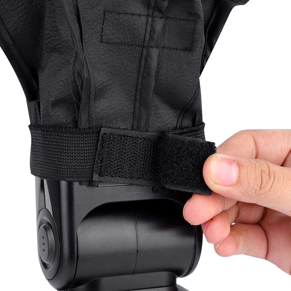 Su diseño portátil y duradero permite colocarlo fácilmente sobre el flash mediante su correa elástica.
