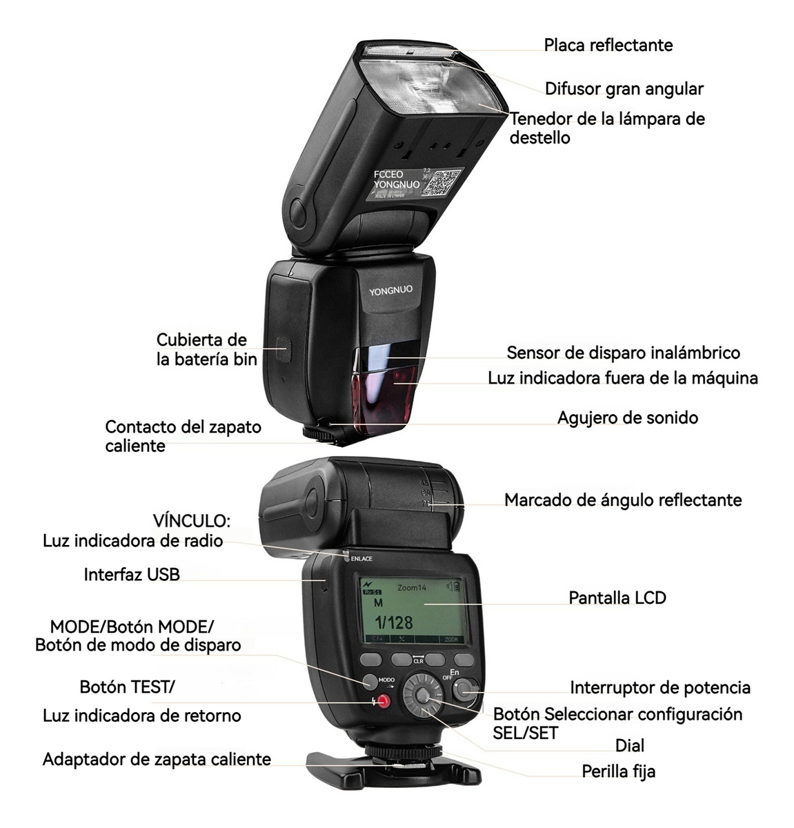 Este es un flash universal para casi cualquier cámara con una interfaz de zapata