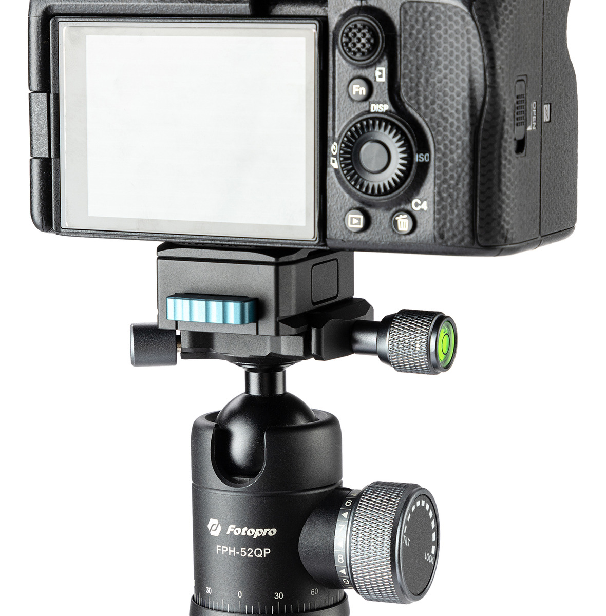 La placa universal de liberación rápida Arca-swiss facilita la conexión de otras cabezas de bola.